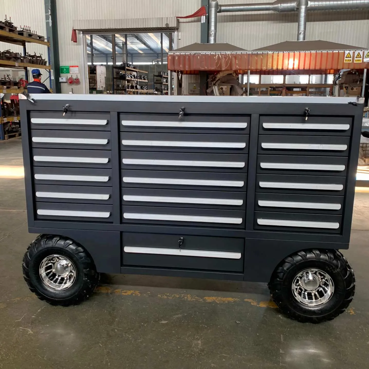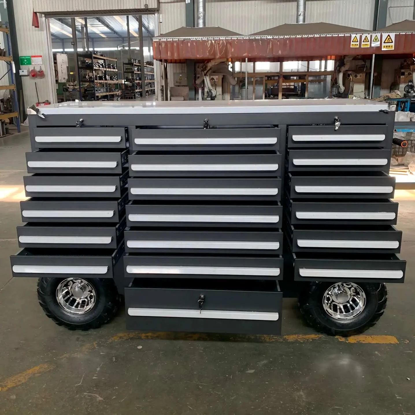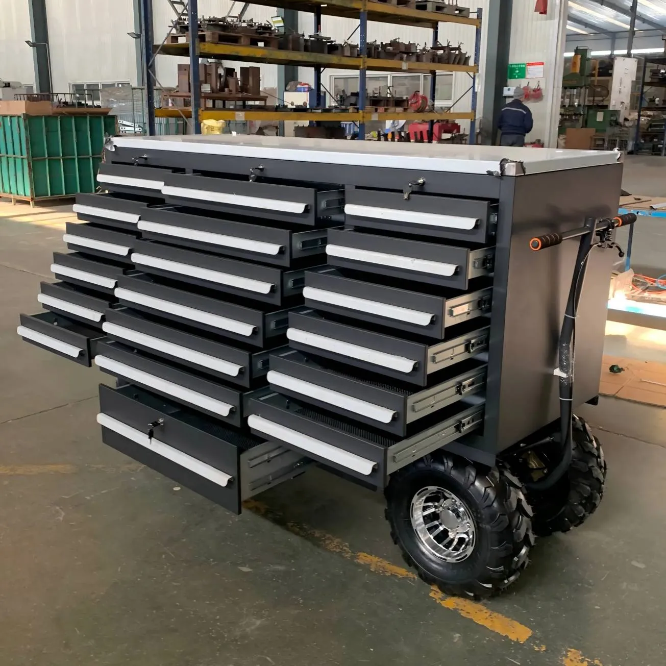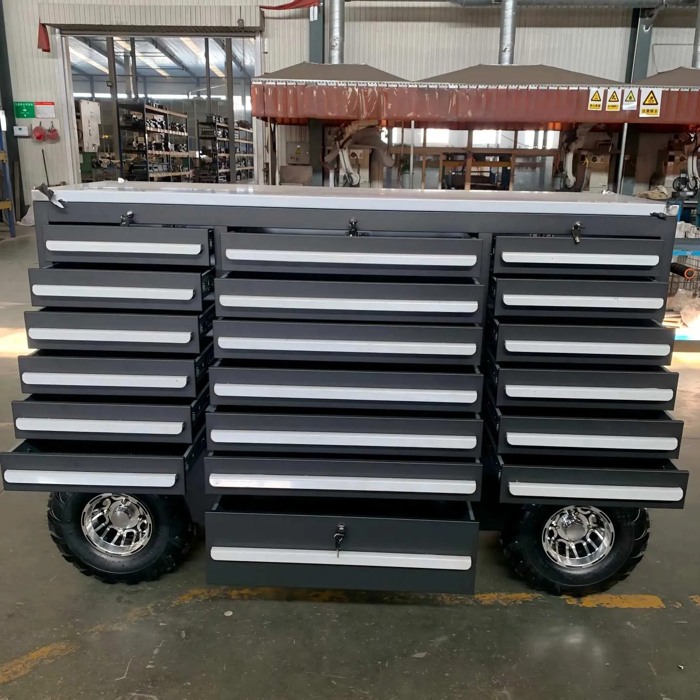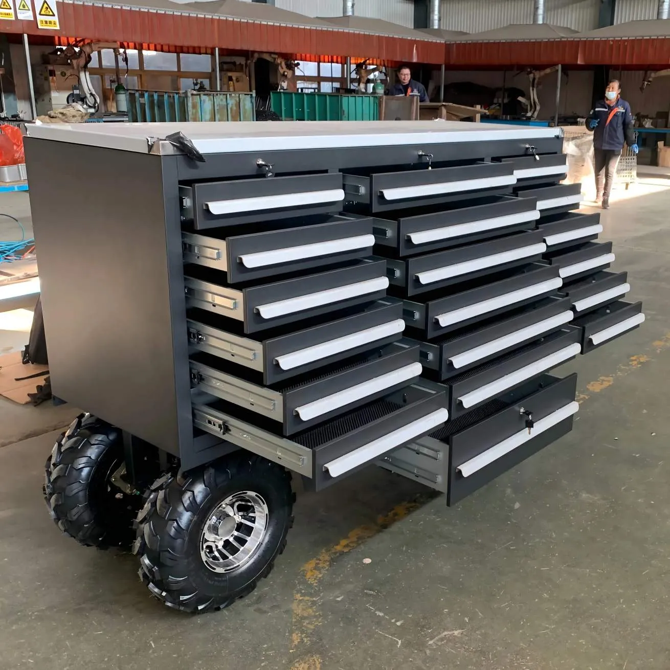 భద్రత మరియు విశ్వసనీయత: సాధన భద్రతను నిర్ధారించడానికి మరియు నష్టం లేదా అనధికార ఉపయోగాన్ని నిరోధించడానికి డ్రాయర్లు తాళాలు కలిగి ఉంటాయి. లోపల యాంటీ-స్లిప్ ప్యాడ్ డిజైన్ సాధనాలు పడకుండా మరియు కదలిక సమయంలో దెబ్బతినకుండా తప్పించుకుంటాయి.