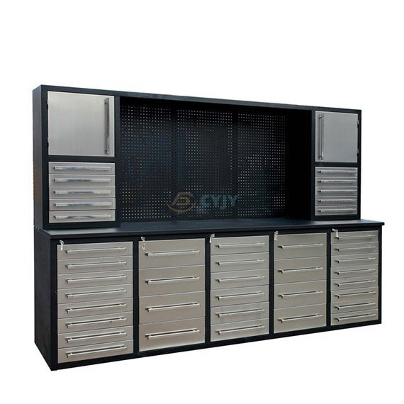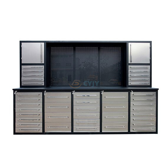 అధిక నాణ్యత గల స్టెయిన్లెస్ స్టీల్ మల్టీ-లేయర్ డ్రాయర్ వర్క్బెంచ్ ఉత్పత్తి చేయబడిందిCYJYప్రపంచవ్యాప్తంగా విక్రయించబడింది. స్టెయిన్లెస్ స్టీల్ మల్టీ-లేయర్ డ్రాయర్ వర్క్బెంచ్ అనేది రూమి డ్రాయర్లతో కూడిన అత్యంత మన్నికైన వర్క్బెంచ్, ఇది అసెంబ్లీకి మరియు ఉపకరణాలు మరియు భాగాలను నిల్వ చేయడానికి అనువైనదిగా చేస్తుంది. సొరుగు టూల్ బెంచ్ యొక్క మొత్తం పదార్థం కోల్డ్ రోల్డ్ స్టీల్ ప్లేట్, డ్రాయర్ గాల్వనైజ్డ్ స్టీల్ ప్లేట్ మరియు కౌంటర్టాప్ 304 స్టెయిన్లెస్ స్టీల్తో తయారు చేయబడింది. డ్రాయర్ టూల్ బెంచ్ పరిమాణంలో అనువైనది మరియు వినియోగదారు యొక్క నిర్దిష్ట అవసరాలను తీర్చడానికి అనుకూలీకరించవచ్చు. . టూల్ బెంచ్ ప్రత్యేకంగా రూపొందించిన టూల్ హుక్స్ మరియు టూల్స్ యొక్క వినియోగదారు-స్నేహపూర్వక నిల్వ కోసం హోల్డర్లను కలిగి ఉంటుంది. స్టెయిన్లెస్ స్టీల్ మల్టీ-లేయర్ డ్రాయర్ వర్క్బెంచ్ వర్క్బెంచ్ సులభంగా ఒక ప్రదేశం నుండి మరొక ప్రదేశానికి తరలించబడుతుందని నిర్ధారించడానికి పెద్ద టూల్ వీల్స్తో అమర్చబడి ఉంటుంది. ఈ బెంచీలు తరచుగా ప్రీమియంతో విక్రయించబడతాయి, కానీ వాటి అధిక మన్నిక మరియు బహుముఖ ప్రజ్ఞ కారణంగా, అవి టూల్బాక్స్లు మరియు వర్క్స్పేస్ సంస్థకు ఆదర్శవంతమైన పరిష్కారం.