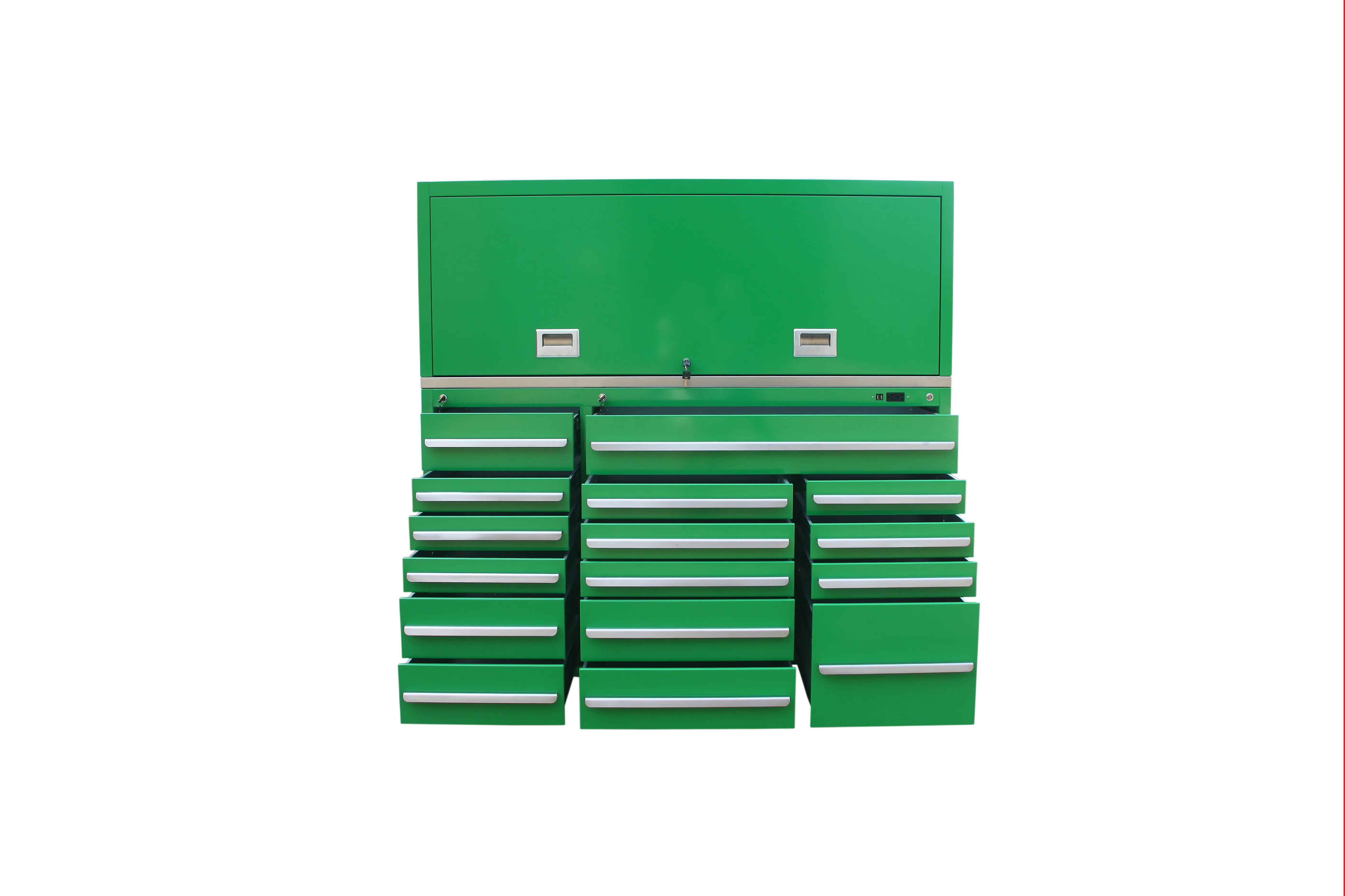 అదే సమయంలో, దాని మానవీకరించిన జోనింగ్ డిజైన్ వివిధ సాధనాలను వర్గాల్లో ఉంచడానికి మరియు ఒక చూపులో స్పష్టంగా కనిపించేలా అనుమతిస్తుంది, సాధనాల కోసం శోధించే సమయాన్ని బాగా తగ్గిస్తుంది మరియు పని సామర్థ్యాన్ని గణనీయంగా మెరుగుపరుస్తుంది. ఇంకా చెప్పుకోదగ్గ విషయం ఏమిటంటే ఇది 1000 కిలోల వరకు లోడ్ చేయగల సామర్థ్యాన్ని కలిగి ఉంటుంది. ఇది భారీ యాంత్రిక సాధనాలు అయినా లేదా పెద్ద సంఖ్యలో ఉపకరణాలు అయినా, ఇది వాటిని సులభంగా ఉంచగలదు, వివిధ దృశ్యాలలో నిల్వ అవసరాలను తీరుస్తుంది.